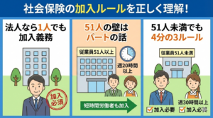 はどうなんだろう?」と不安を感じてしまうのも無理はありません。 ただ、「51人未満なら加入しなくていい」というのは、一部のケースに限られたものですので後で困らないよう今のルールを一緒に確認しておきましょう。